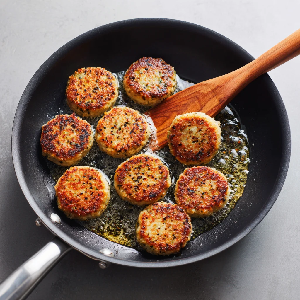 Once the oil is hot, gently place the tuna cakes into the pan. Let them cook for about 3 to 4 minutes per side, or until they’re golden brown and heated through. Try not to move them too much—let them get that crispy crust before flipping.