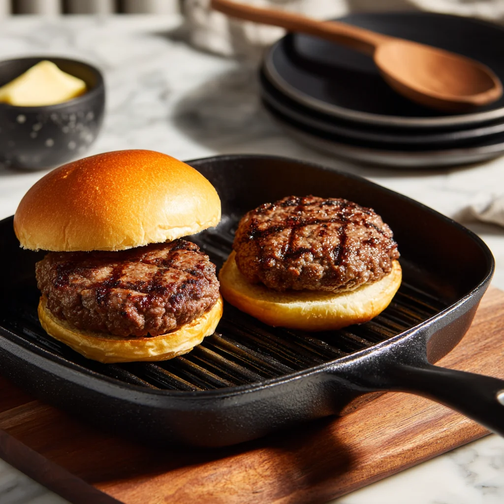 Yes! A cast-iron skillet or flat-top griddle works great for indoor cooking. Just make sure your pan is hot before adding the patties to get that good sear.